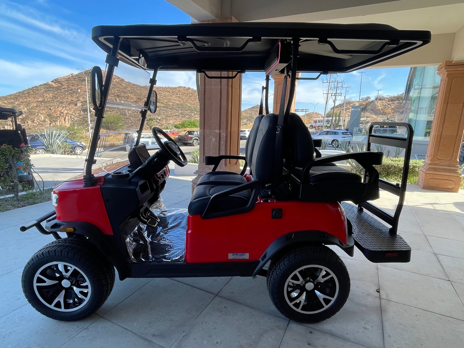 Constructed with a durable aluminum frame and powder-coated aluminum chassis featuring a 2.5” lift, this model combines strength with modern styling. Inside, you’ll enjoy a 10.1” digital touchscreen display with rear backup camera, Apple CarPlay & Android Auto, Bluetooth stereo with sound bar, USB/USB-C charging ports, LED headlights and tail lights, turn signals, emergency flashers, premium seating, and ample storage including a locking glove box and rear storage bin.